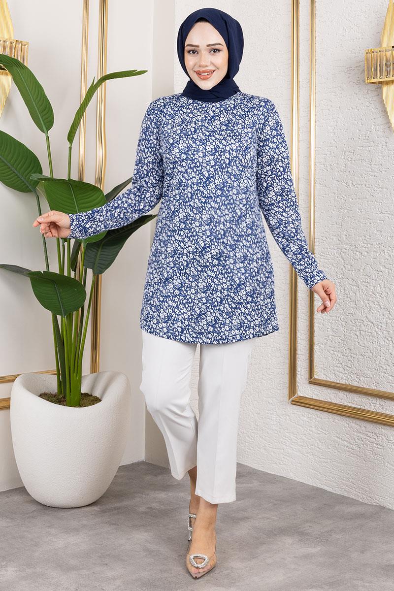 Desenli Tesettür Tunik LACİVERT (9025MYS)