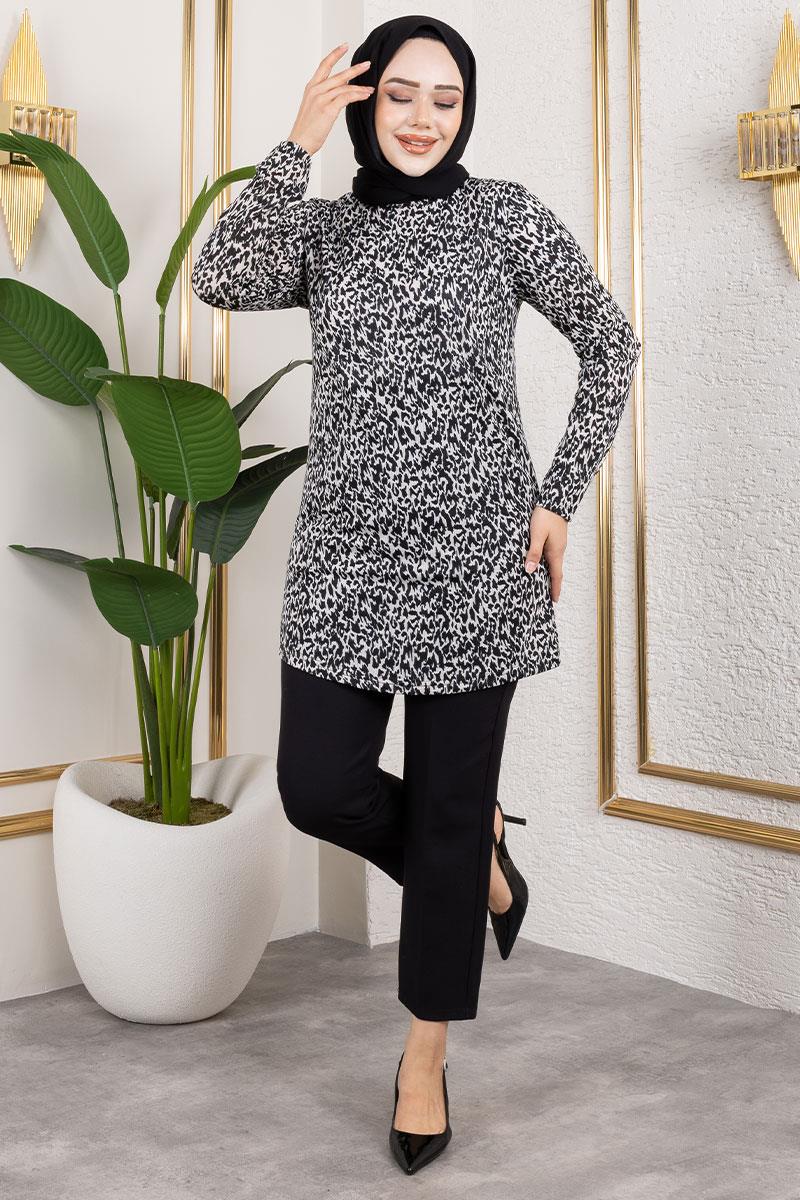 Desenli Tesettür Tunik SİYAH (9025MYS)