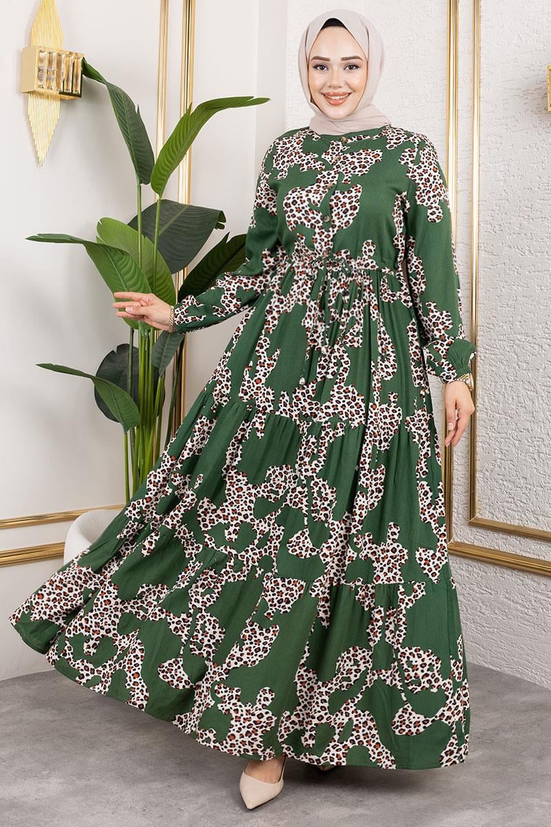 Leopar Desenli Viskon Elbise YEŞİL (7135SGS)