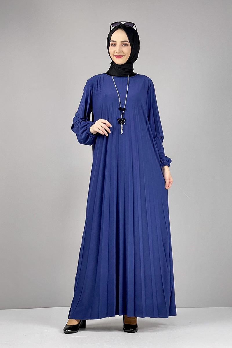 Piliseli Sandy Elbise İNDİGO (1052MG)